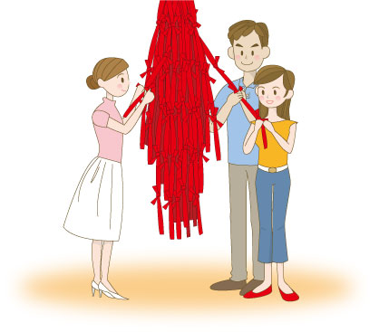 | 良縁成就・恋愛成就を祈願します。恋愛・結婚はもちろん、 仕事や友人など、赤い糸が大切なご縁を結びます。 |