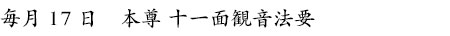 毎月17日は観音様の縁日です。 その月お参りされた皆様の心願成就を 祈願します。 |